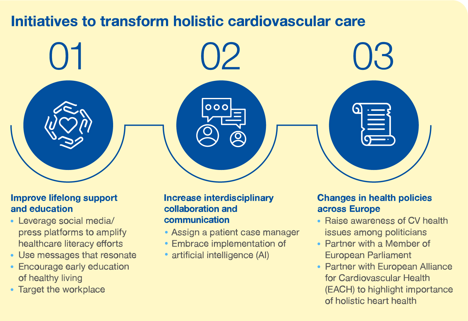 To drive meaningful action towards a holistic approach to CV care in Europe, the Think Tank proposed recommendations in three key areas: